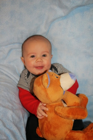 We celebrated his being 3 months with a nice little walk outside. He absolutely loved it. Everytime his sisters would ride their bikes out in front where he could see, he would laugh. Can't wait until spring when I can take them out more.